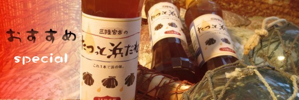 浄土ヶ浜レストハウスのオリジナルだれ 「たつっと」とは、ほんの少しという意味。 少量で浜の味がするタレです。(15倍希釈) 中身には、宮古の塩の原液、帆立とカニのエキスが入った濃縮だれ。 炒め物、煮物、ラーメン、鍋などいろんなものにも使用 できますので、おすすめです。 |